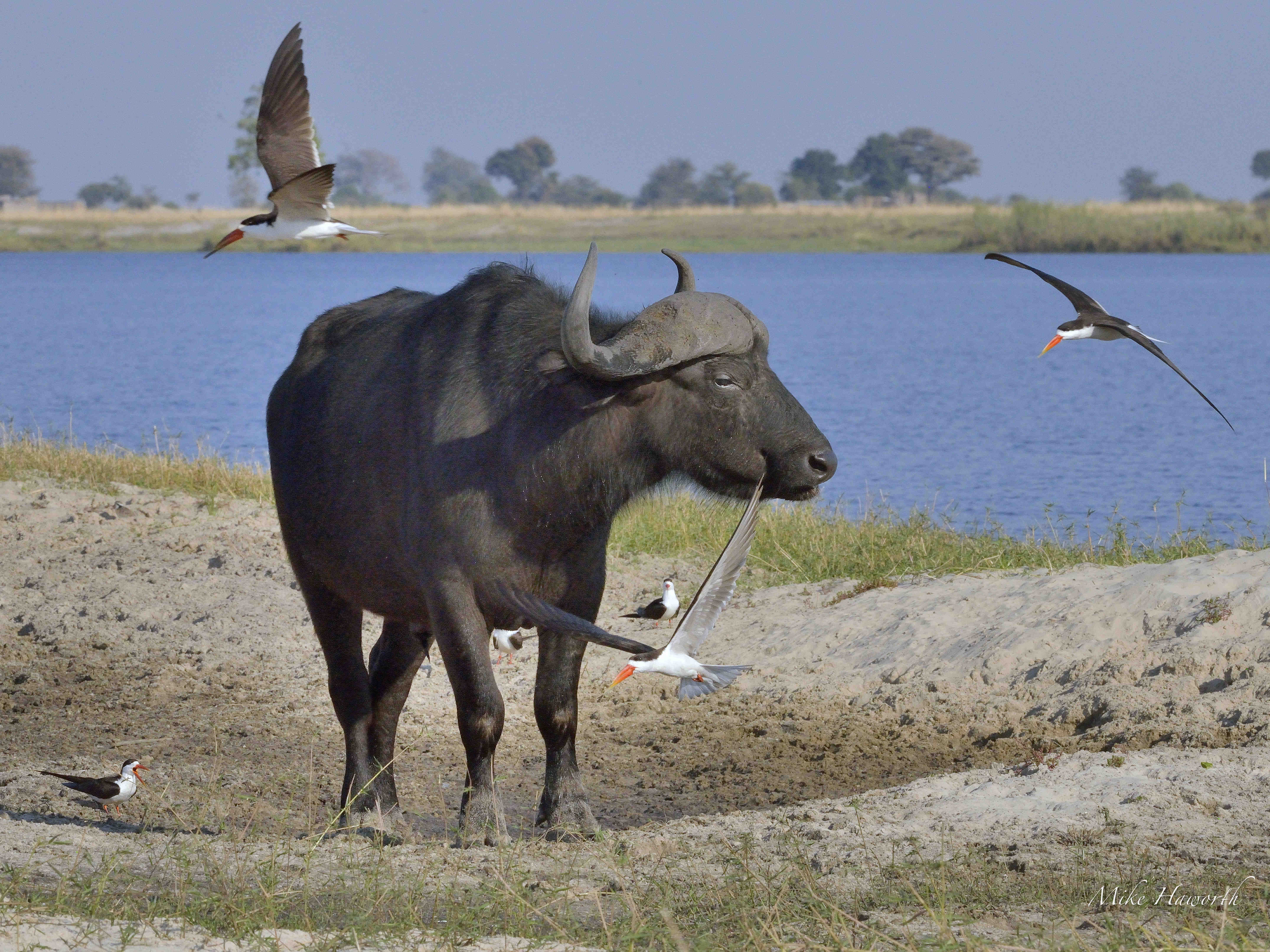 Skimmers mobbing these Buffalo to prevent them from trampling their nests on Skimmer island